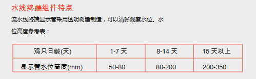 長使用壽命。飲水乳頭和調(diào)壓器技術(shù)成熟,性能穩(wěn)定,能滿足肉雞及種雞飲水要求夏季用水量大,可上調(diào)30-50mm。